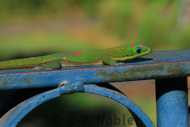 Gecko vert à poussière d'or. Phelsuma laticauda