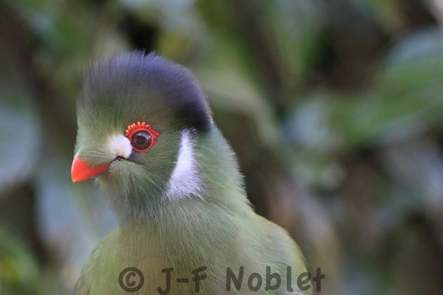 Touraco à joues blanches.Tauraco leucotis